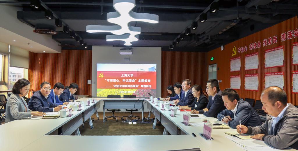 10月17日下午,上海大学校领导班子“不忘初心、牢记使命”主题教育“政治纪律和政治规矩”专题学习研讨会在行政楼403举行,会议由校党委书记成旦红主持。